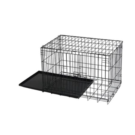 Клетка для собак двухдверная позволит содержать небольшого питомца на выездных выставках, в процессе транспортировки или на передержке. Пригодится и чтобы