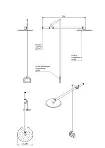 Аварийный душ SFA10 имеет настенную конструкцию скрытого подключения. Длина излива (без учета лейки) составляети 570 мм. Активация душа — при помощи ручного подвешенного рычага. Рекомендуемая высота монтажа душа — не более 3,6 м. Фонтан комплектуется плакатом с правилами использования для персонала.