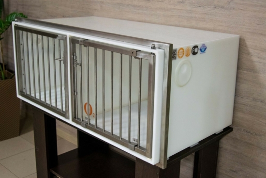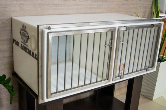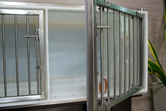 Клетка для животных, выполнена из прочного, химически стойкого, пищевого пластика – полипропилена (PP). Дверцы секций, включая крепеж, выполнены из нержавеющей стали AISI 304.