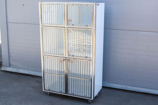 Клетка для животных, выполнена из прочного, химически стойкого, пищевого пластика – полипропилена (PP). Дверцы секций, включая крепеж, выполнены из нержавеющей стали AISI 304.
